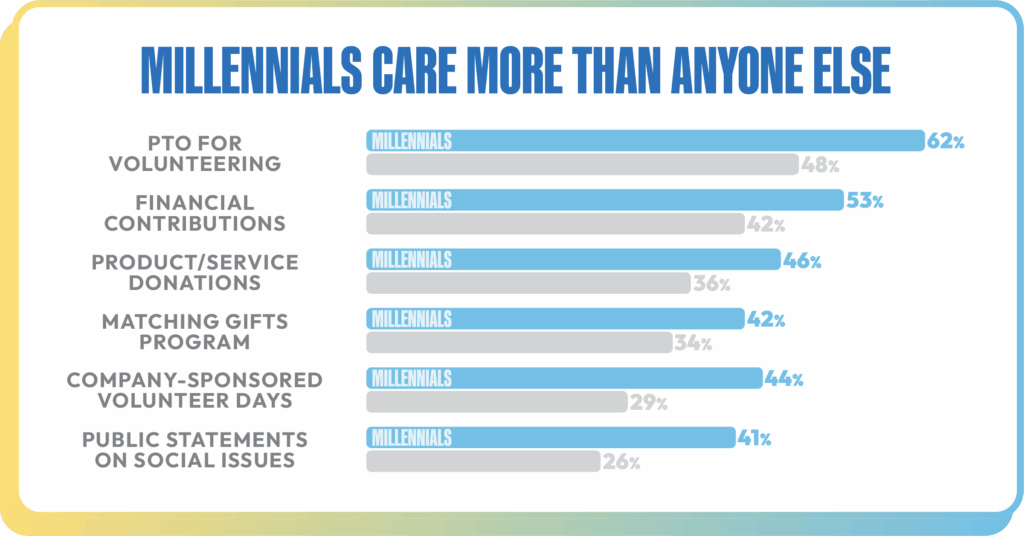 While community outreach may not be the priority for most employees in terms of generosity, it is a critical motivator for Millennials. To maximize the impact of community outreach efforts, companies should focus on engaging this group through a diverse and visible range of initiatives.
