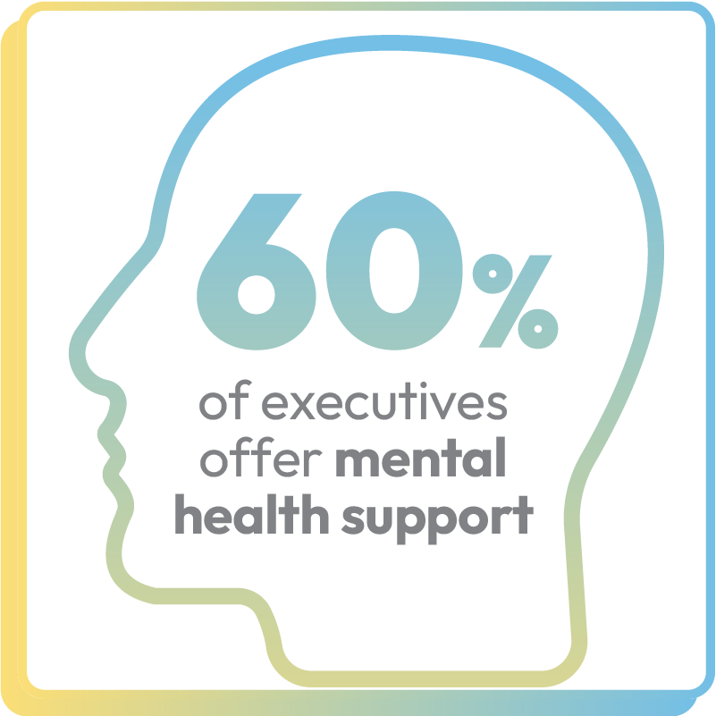 Mental Health Support. Employees’ request for greater mental health support continues, and executives are responding. The percentage of companies offering this has risen from 41% in 2023 to 60% this year.