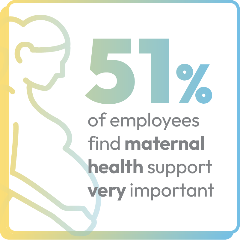 Maternal Health Support. For the second consecutive year, expanded maternal health support (covering pregnancy, prenatal and post-partum care, fertility, adoption, and surrogacy) maintains strong demand.Notably, 85% of employees consider it important with over half (51%) finding it very important—an 11-point increase from 40% in 2023.