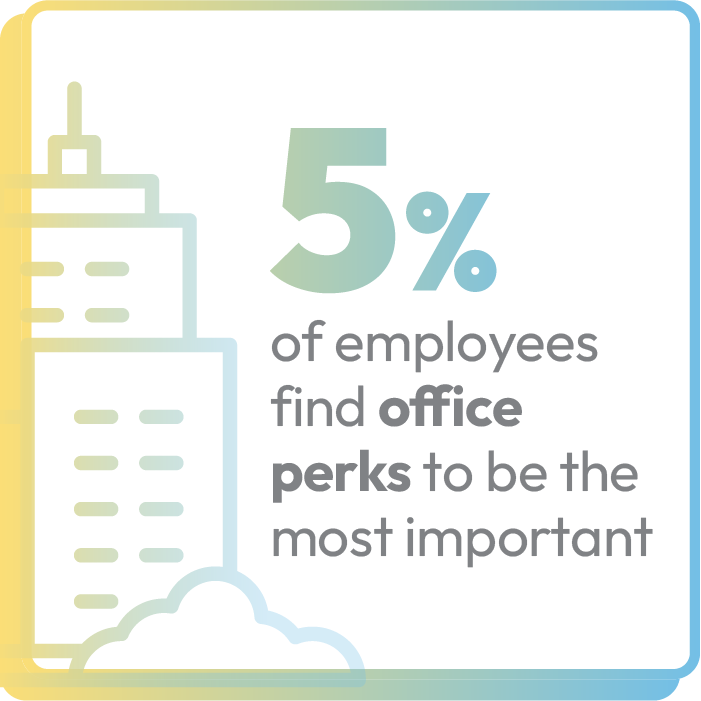 Cost-Benefit of Office Perks. While 55% of executives offer updated, collaborative workspaces with great perks, this employee care option ranks at the bottom of employee requests, with only 5% citing it as most important. This indicates a significant disconnect between high executive investment and what employees perceive as most valuable.