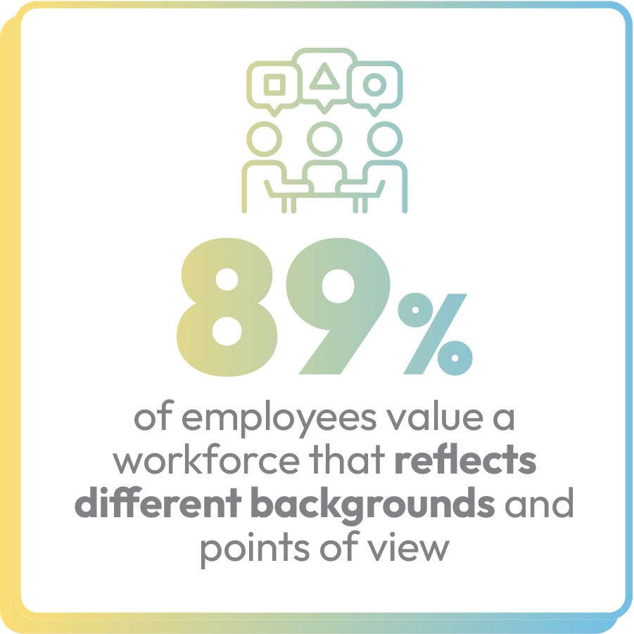 Workforce Reflecting Different Backgrounds and Points of View. Over the past three years, there has been a steady increase in the number of employed adults who believe that a generous company should foster a workforce that reflects different backgrounds, experiences and points of view (rising from 84% in 2023 to 89% in 2025). Regardless of the specific terminology, employees find this aspect of culture increasingly vital.