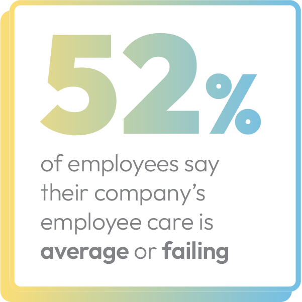 Unfortunately, over half (52%) of employees rate their current company’s employee care as average or failing. This dissatisfaction is largely due to a gap between what employers offer and what employees consider above-and-beyond care.
